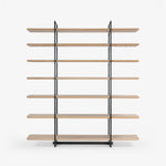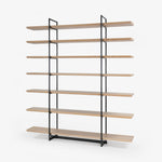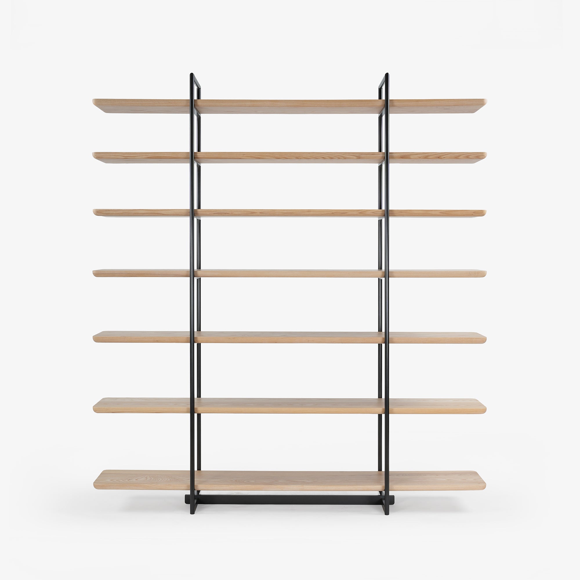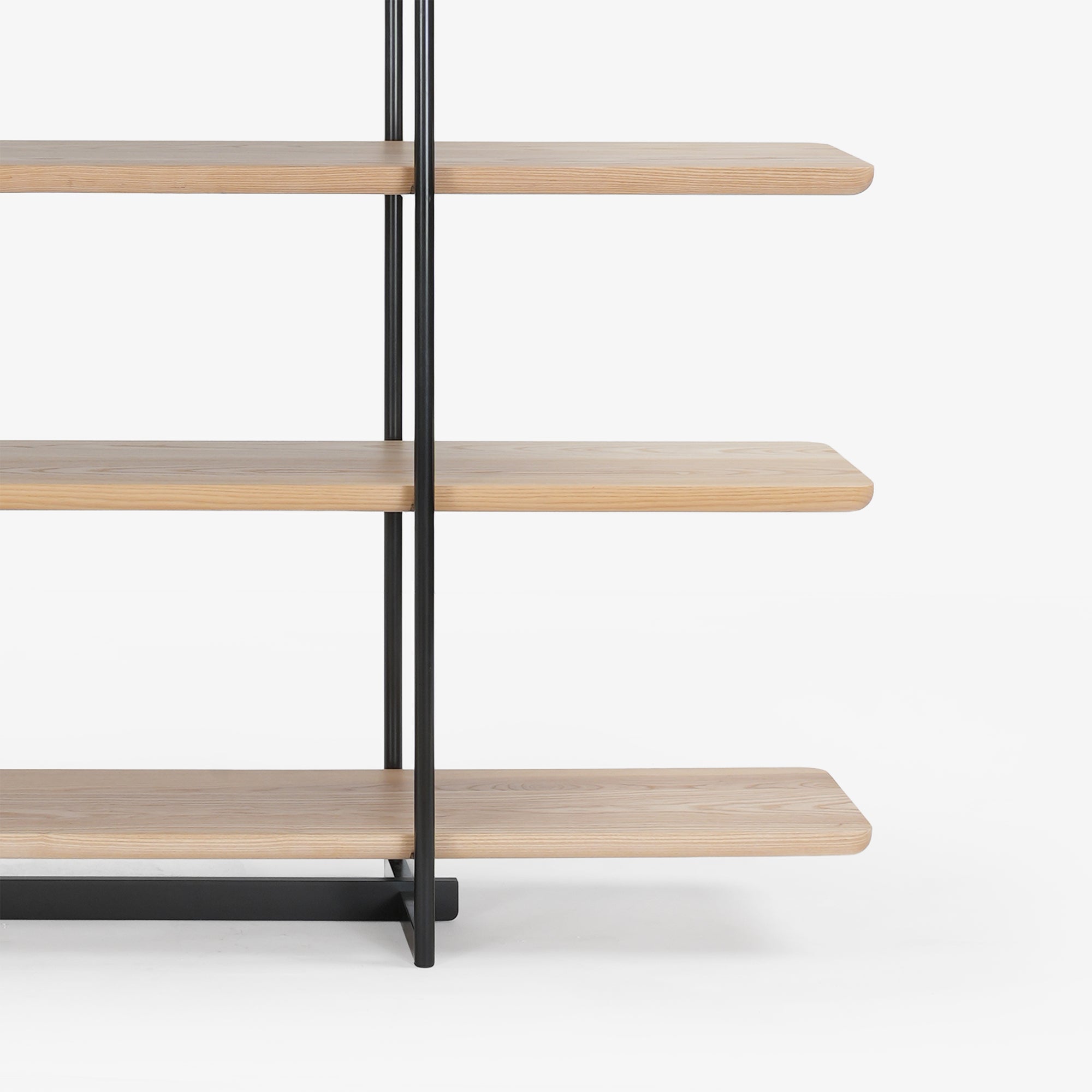 display model. 7 shelf unit in solid natural Ash timber with Gunmetal steel uprights.